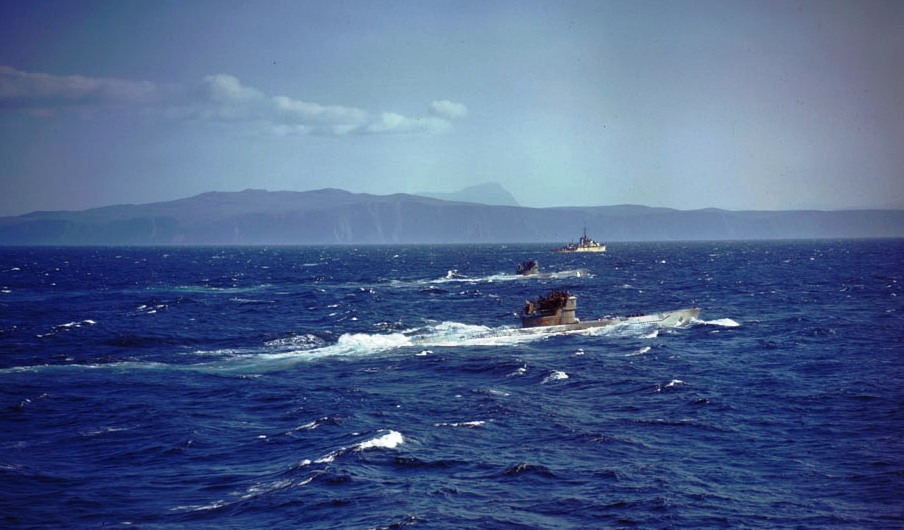U-541 surrendering to HMS Malcom (L19) on 11 May 1945.