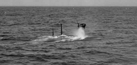 Photo of the capture of U-744, taken from HMCS Chilliwack (K131), 6 March 1944.