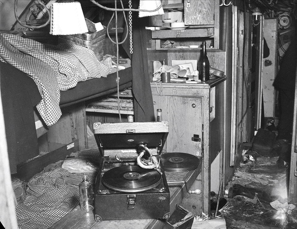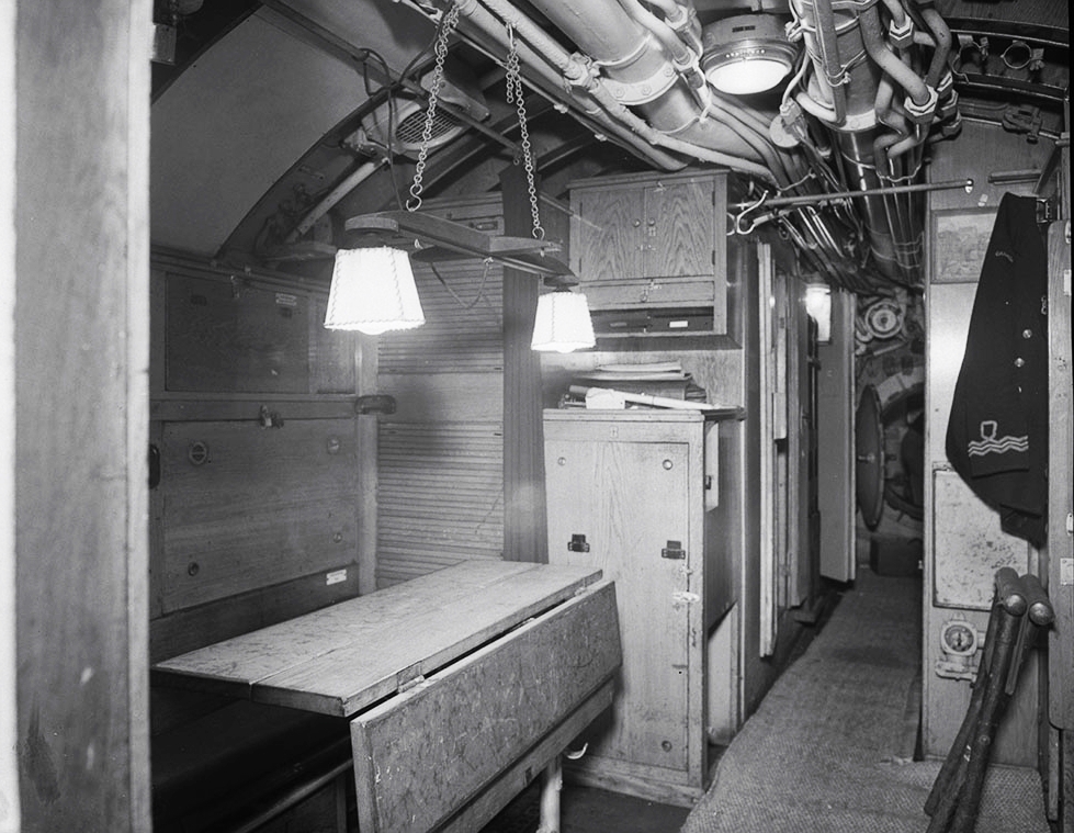 Officers wardroom of German submarine U190, immediately after surrender. Saint John’s, Newfoundland, May 1945.