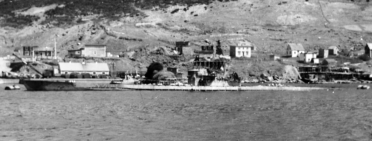 U-190 IXC/40,surrendered, Wintermeyer.  Surrendered tothe RCAF and RCN on 12 May 1945 at Bay Bulls, Newfoundland.  U-190 was taken to St. John’s, Newfoundland, in June and then to Halifax, Nova Scotia. She was commissioned into the RCN and served until she was no longer seaworthy.  After being used for tests she was sunk by bombs and gunfire from the Destroyer HMCS Nootka (R96) and the minesweeper  HMCS New Liskeard (J397),south-west of Halifax on 21 Oct 1947.[6]