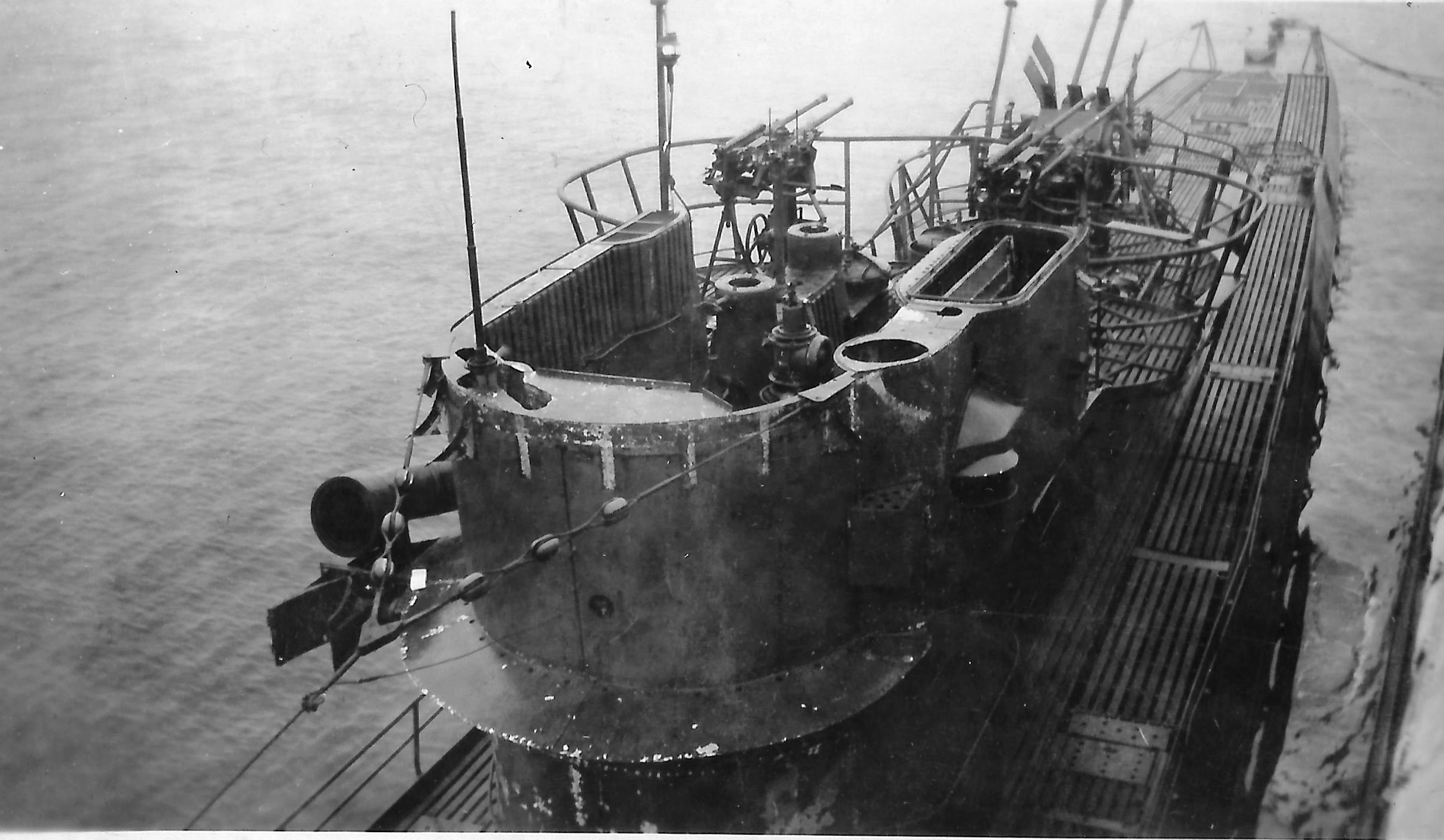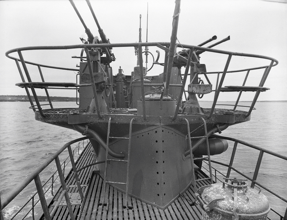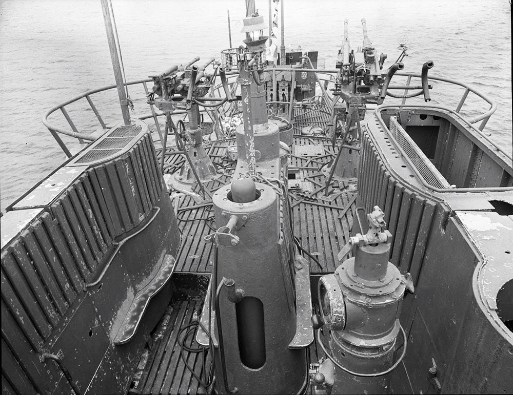 View looking aft from bridge of German submarine U-889, 25 May 1945.