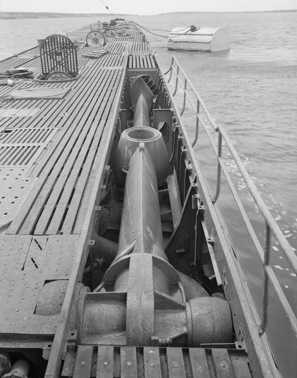 View forward showing Schnorkel of German submarine U-889 in housed position, 25 May 1945.