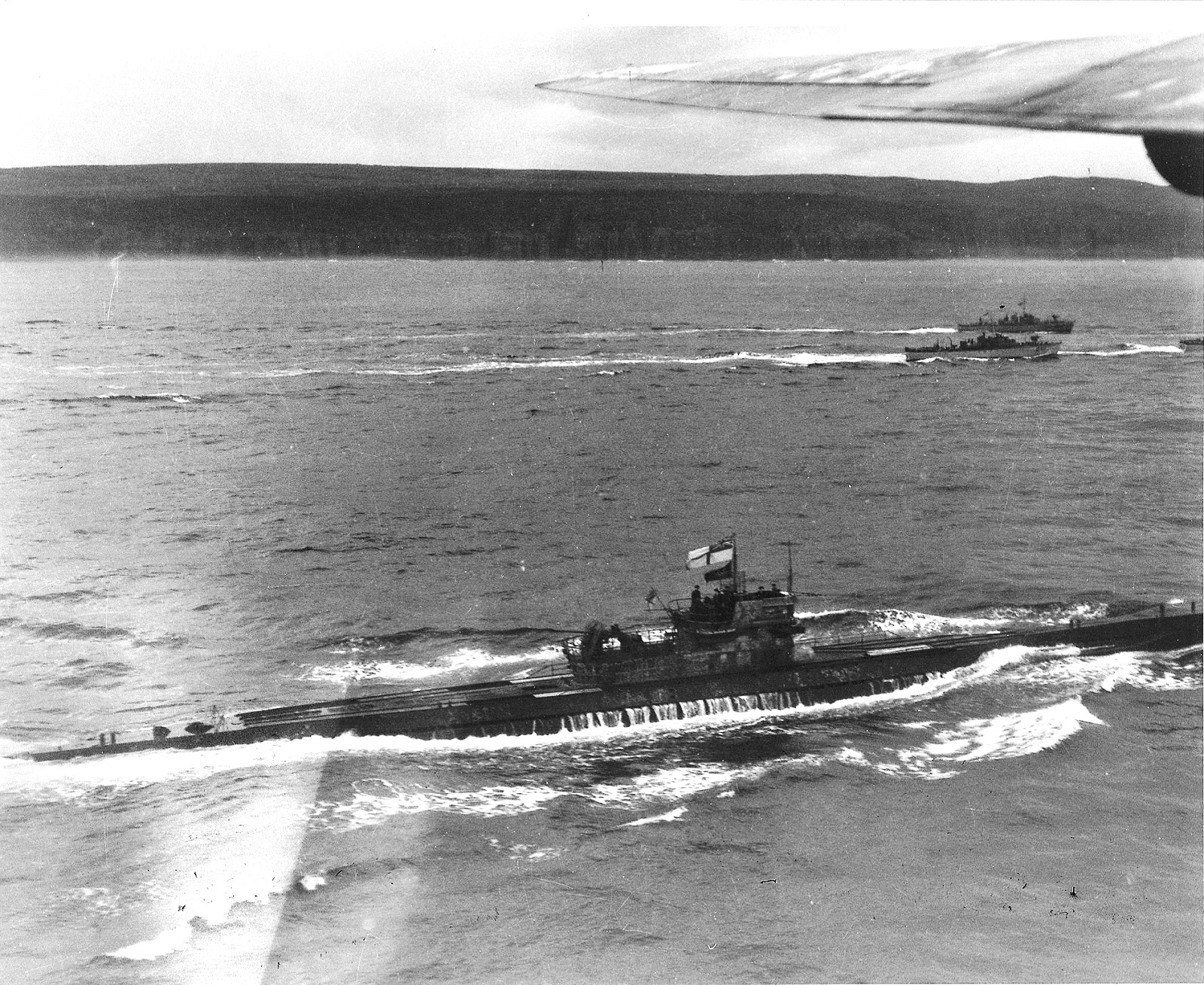 U-889 surrender off Shelburne, Nova Scotia, overflown by a Canso from No. 161 Squadron RCAF, 13 May 1945.