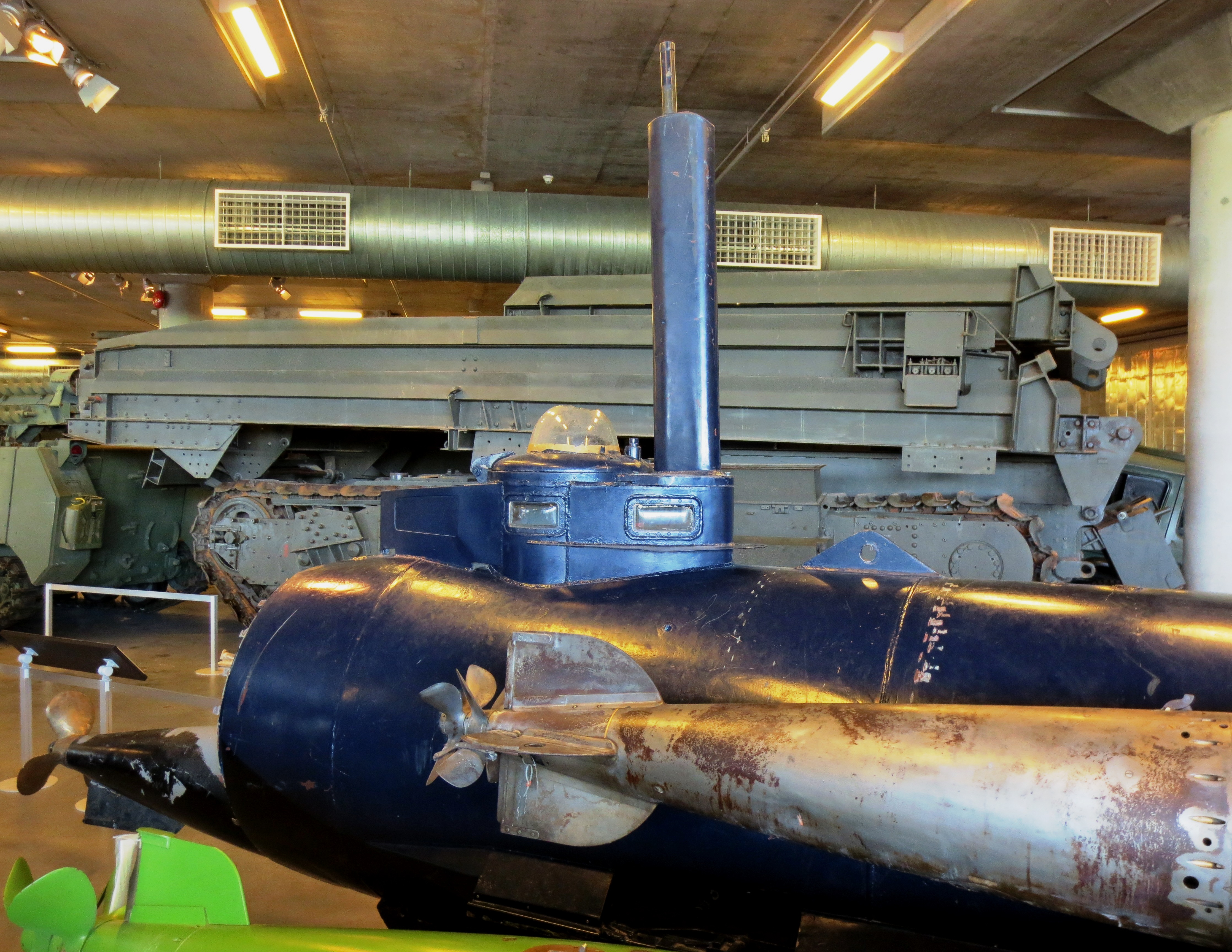 German Molch one-man submarine mounted on a trailer.