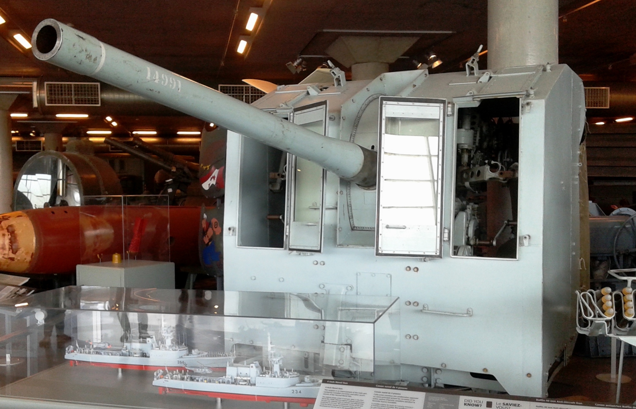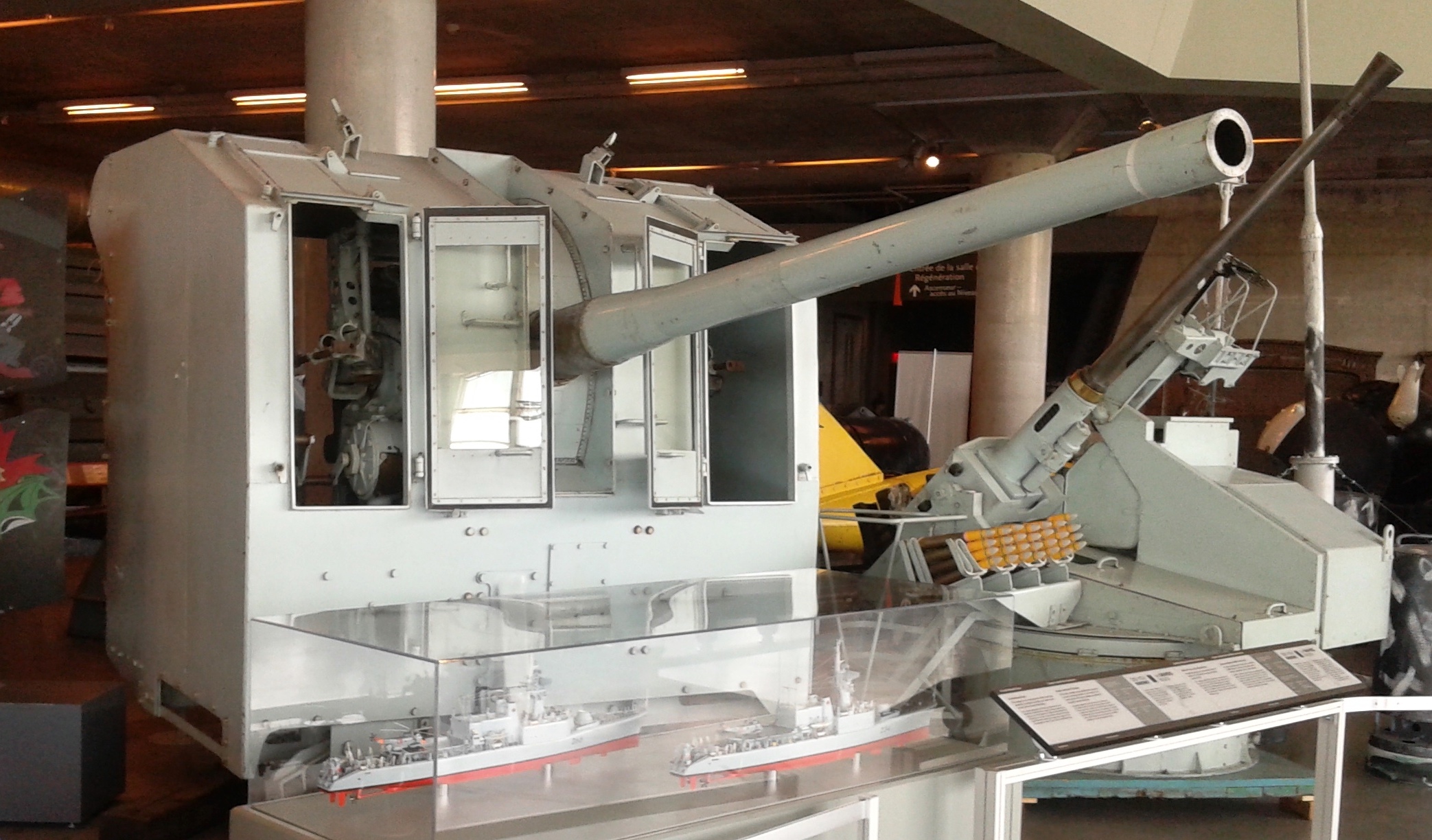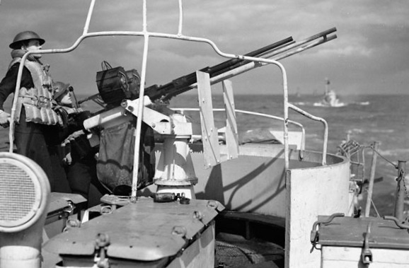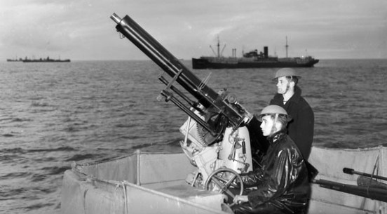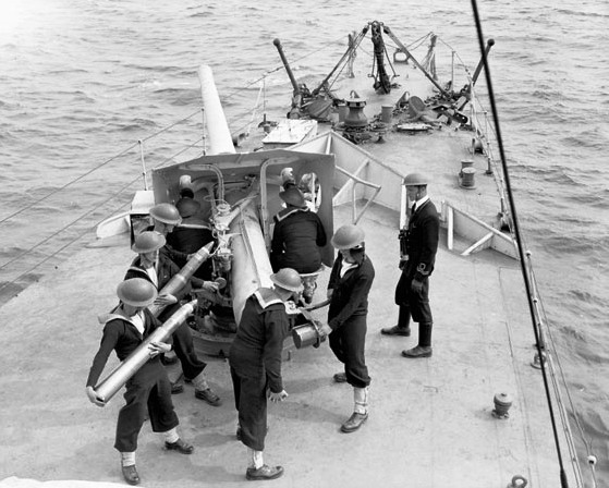 40-mm/39 2-pounder Mk. I single, V.S.M. (Vickers, Sons & Maxim LL) Automatic Gun, weight (410 lbs), VSM 1905, aka “pom-pom”, manned on an RCN destroyer, 1940.
