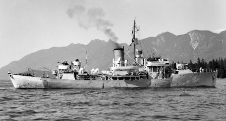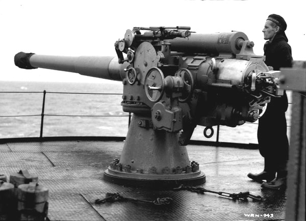 4-inch QF Mk. IX Gun on board HMCS Nanaimo, ca 1945. (Jack Lindsay Photo)