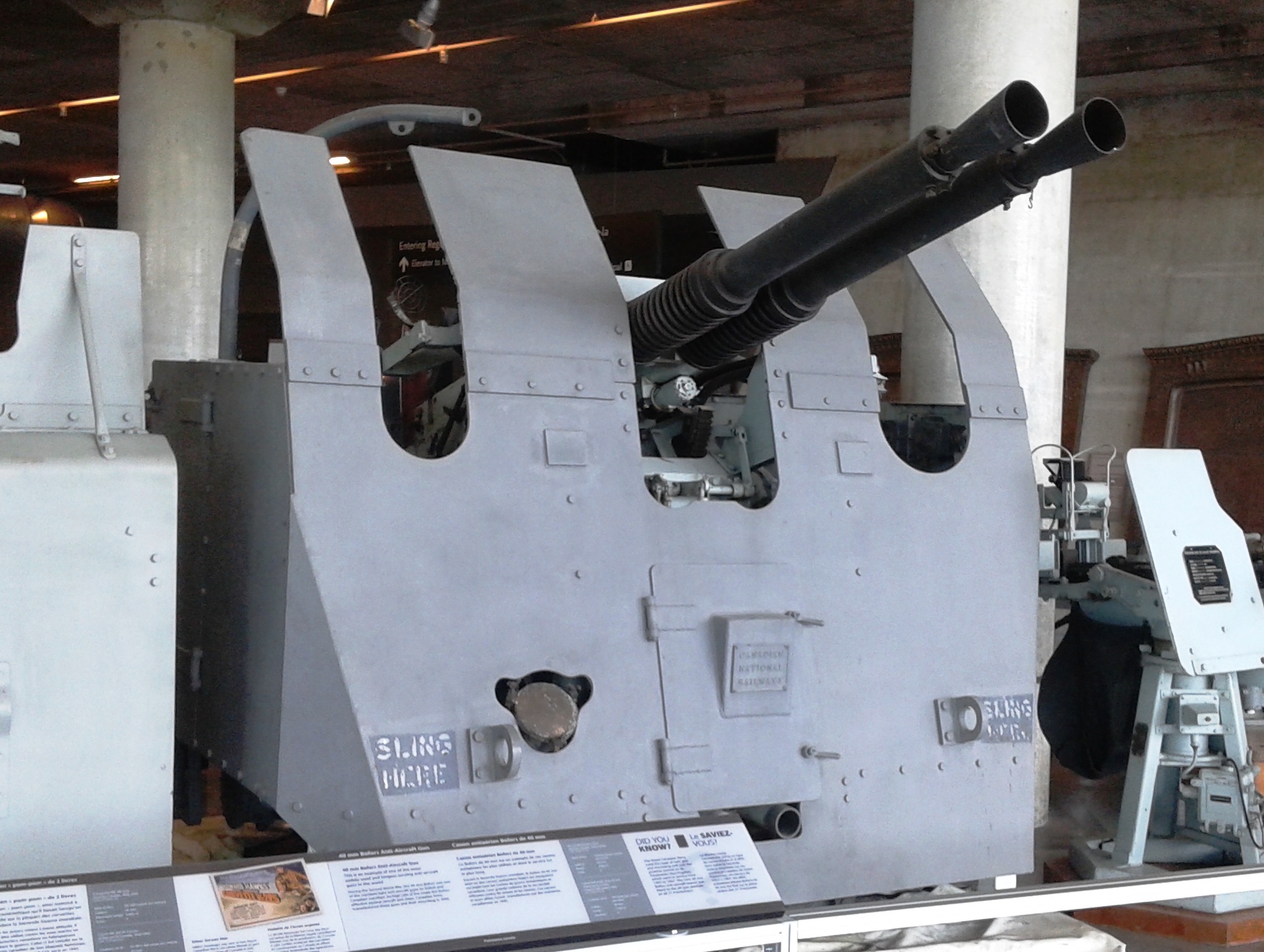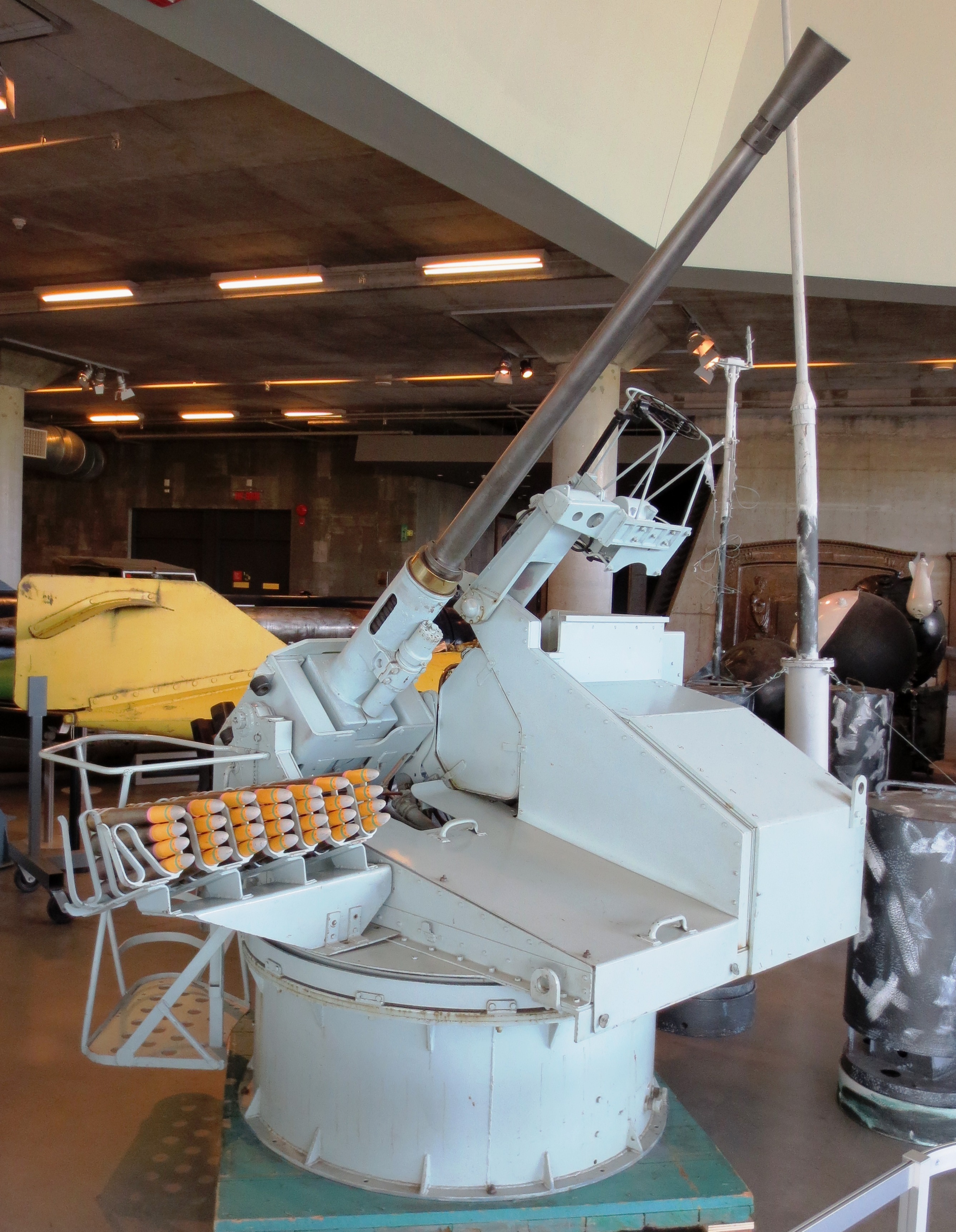 40-mm Bofors L/60 Light Anti-Aircraft Gun in Mk. VC Boffin Mounting. As aircraft performance increased during the Second World War, the 20-mm Oerlikon antiaircraft gun became less effective and was replaced by the 40-mm Bofors. The Boffin was an adaptation of the Canadian Oerlikon twin Mark V or Mark VC 20-mm mounting to use a single40-mm Bofors gun. The turret-type mounting was shielded, hydraulically powered, relatively lightweight, and could be mounted on small warships. After the war, Bofors were mounted on various RCN ships including the carriers HMCS Magnificent and HMCS Bonaventure. When the ships were scrapped, the guns were put in storage until they were issued to the Royal Canadian Artillery as a low-level air defence weapon in the 1970s.When 4th Air Defence Regiment, RCA, received new twin 35-mm guns in 1989, the Boffins were returned to the navy. Being available (and therefore cheap), they were selected as the main armament on the new Kingston class Maritime Coastal Defence Vessels (MCDV). Twelve MCDV were commissioned between 1995 and 1996 and are proving very successful. All but two members of a crew of 31-37 sailors on each ship are naval reservists, and the Boffin provides a practical method of training them in gunnery. After more than sixty years, the Boffin is still in Canadian service.The CWM artefact, Boffin cradle mounting CAN 111 started life in 1943 as a 20-mm twin Mk. V mounting. It now mounts Bofors barrel LL32594. CWM 19590026-001.