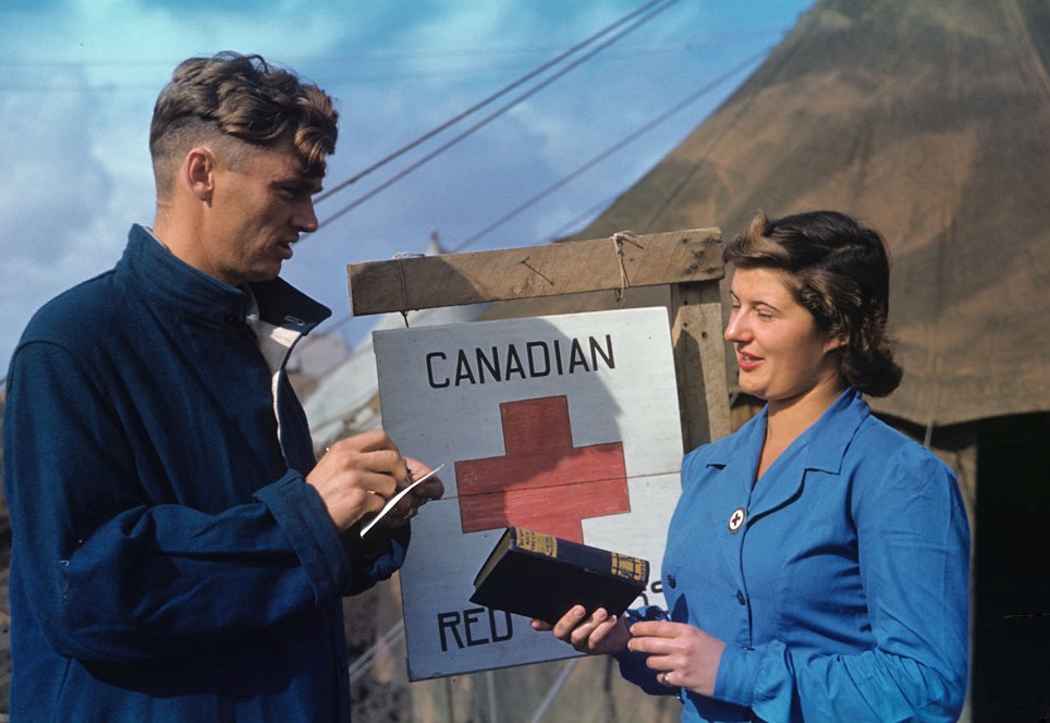 During the Second World War and for years after, some 15,000 women were recruited to form the Canadian Red Cross Corps. Some of these women went overseas to assist in hospitals and some drove ambulances. Many others helped out from Canada by assembling food parcels that were sent overseas.