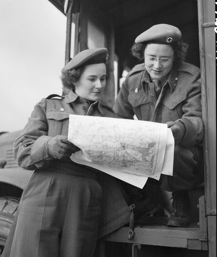 Coralie Field and Peggy Leigh of the Canadian Red Cross at Charleton Park, 7 January 1945.