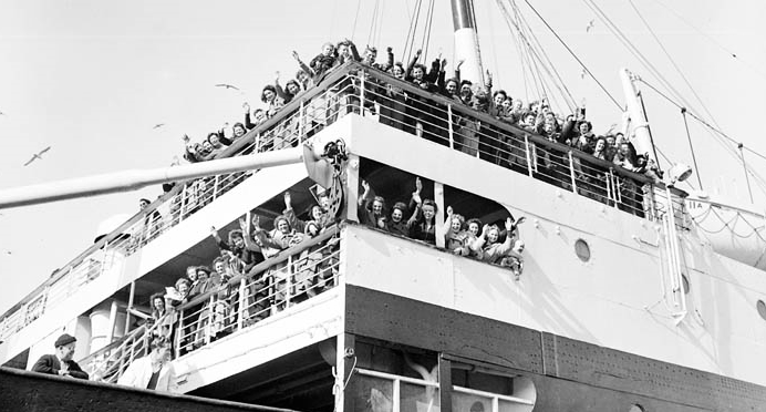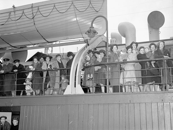 Most of the 48,000 young women who had married Canadian servicemen, and their 22,000 children, were brought to Canada between 1942 and 1947, with the majority arriving in 1946. A few Canadian servicewomen married British husbands. These men were also eligible to travel to Canada. Many arrived on the Queen Mary, which had been converted into a troopship. Most arrived at Pier 21 in Halifax, Nova Scotia.