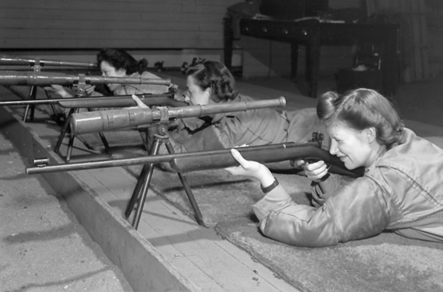 CWAC members on the firing range, 15 Dec 1944.