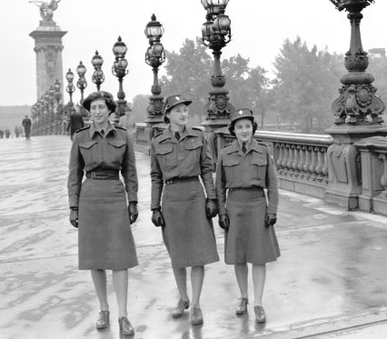 Personnel of the Canadian Women’s Army Corps crossing the Alexandre III bridge, Paris, France, 15 October 1944.