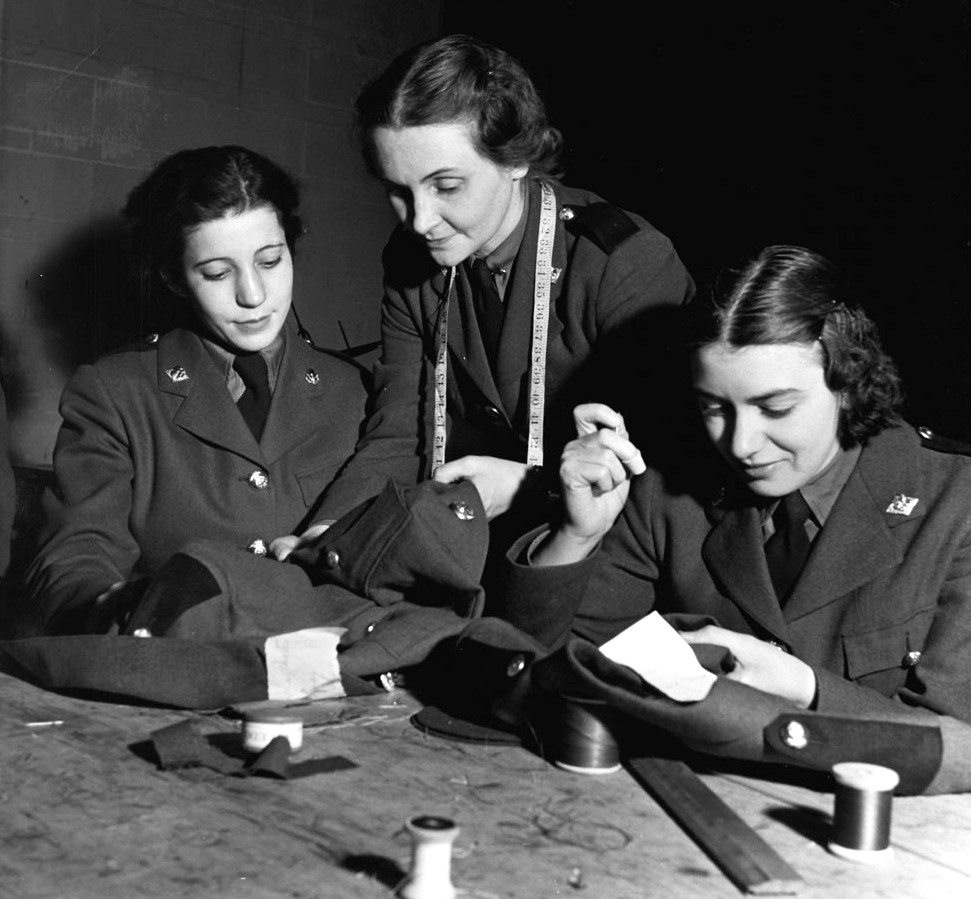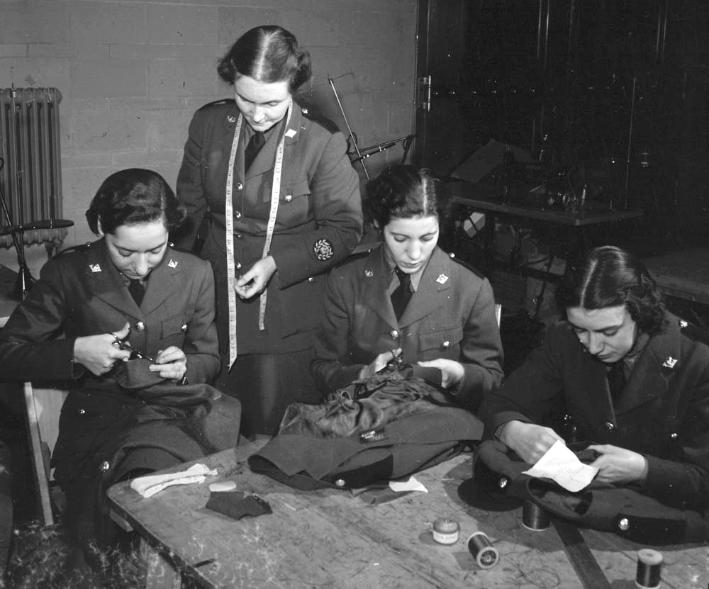 CWAC members sewing adjustments to their uniforms, 1941.