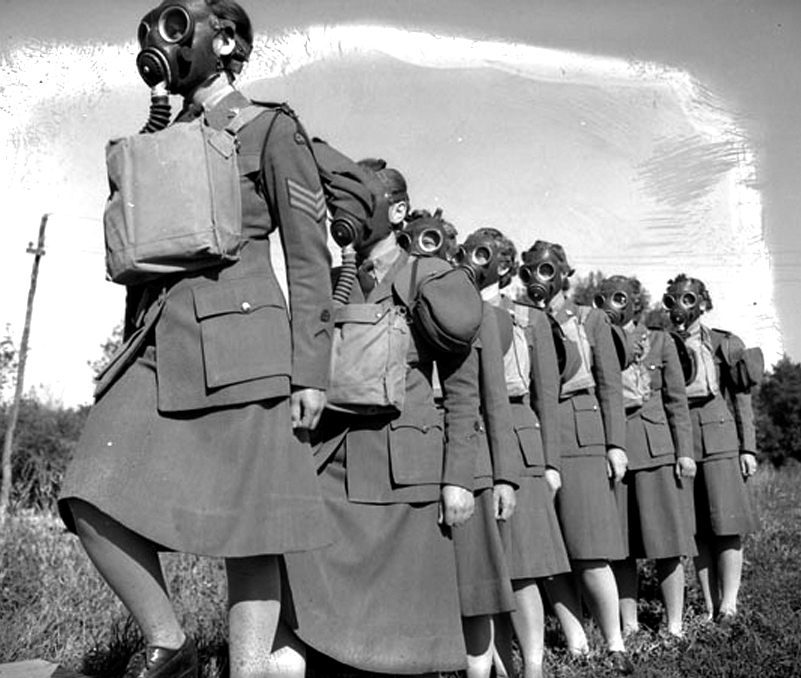 CWAC entering a gas hut on a training exercise, No. 2 Canadian Women’s Army Corps, Basic Training Centre, Vermilion, Alberta, July 1943.