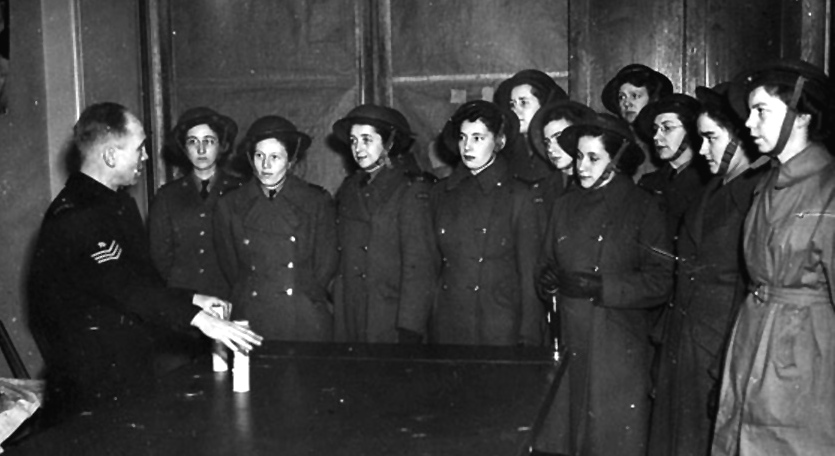 Canadian Women’s Army Corps memberstaking instruction in bomb-handling, London, England, 30 Jan 1943.