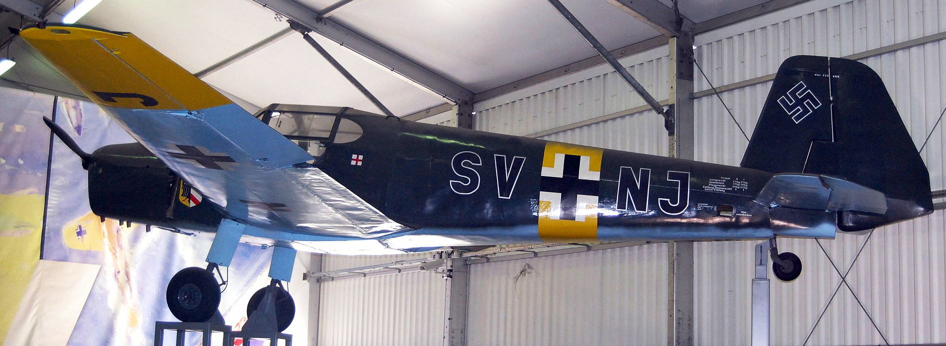 Heinkel He 162A-2, (Wk. Nr. 120015) formerly of III./JG1, painted as (Wk. Nr. 120223), "Yellow 21", Musée de l'Air et de l'Espace, Le Bourget Airport, near Paris, France.