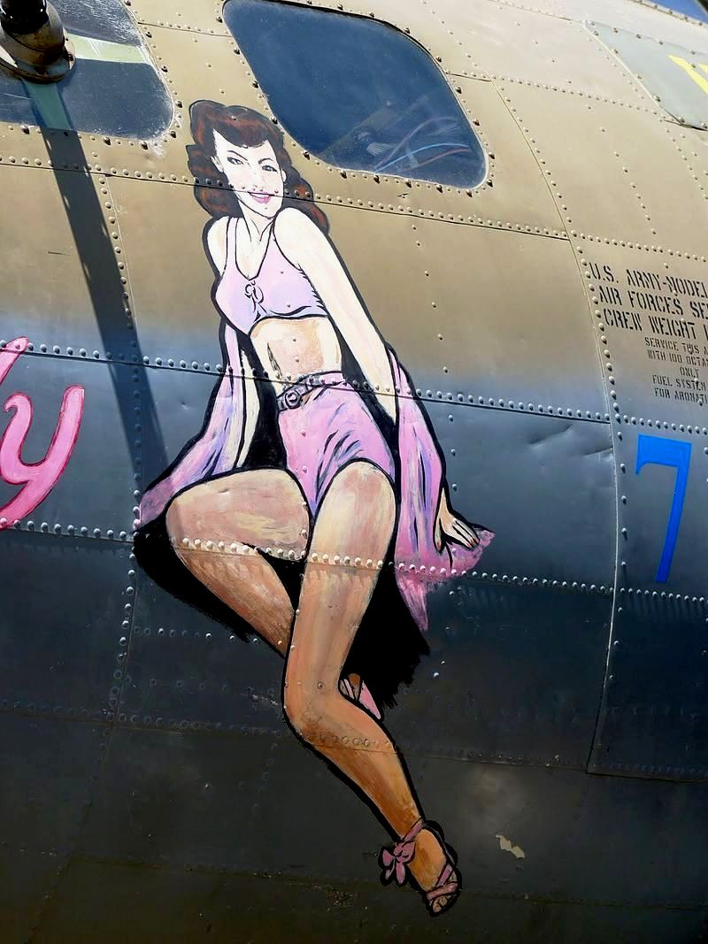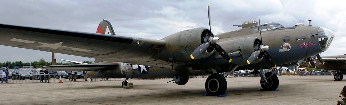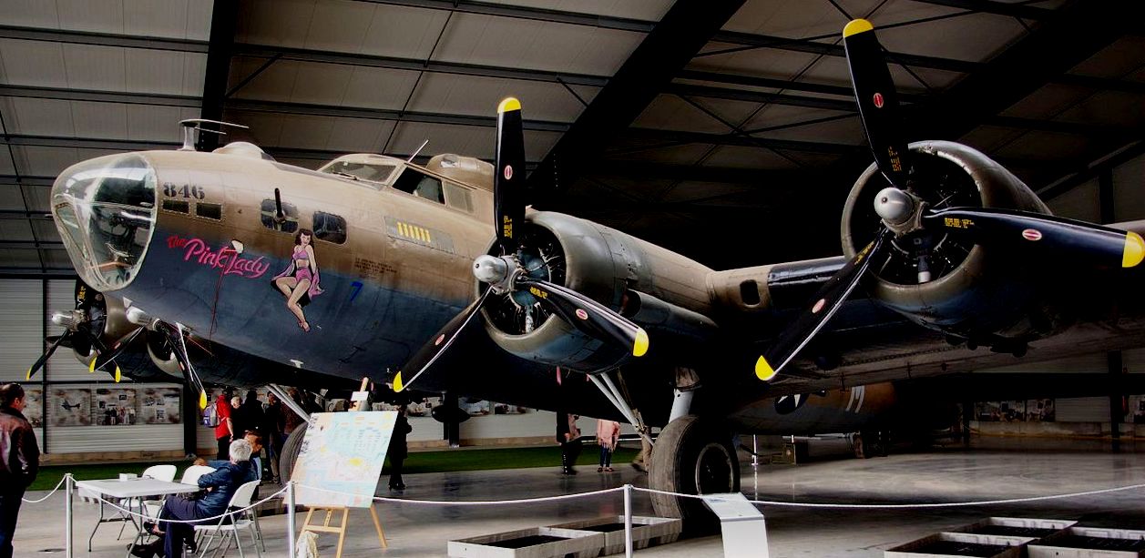 Boeing B-17G Flying Fortress (Serial No. 44-8846). Built at Vega Burbank, California. Flown to RAF Polebrook 1 March 1944 and assigned to 511th Bomb Squadron. Flew six missions. Sold in 1954 to Institut geographique national and used until 1985. Purchased by Forteresse Toujours Volante in 1988. Paint in the colours of the "Pink Lady." Paris.