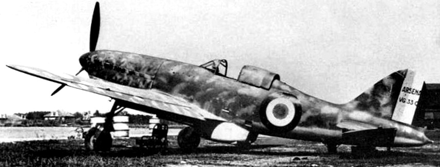 The Arsenal VG.33 was one of a series of fast French light fighter aircraft under development at the start of the Second World War, but which matured too late to see extensive service in the Armée de l’Air during the Battle of France. Somewhat under-armed compared to the Messerschmitt Bf 109, the VG.33 matched it in speed and manoeuvrability and was somewhat faster than the Dewoitine D.520. In larger quantities, this plane could have shown the Luftwaffe a rough time, but as was the case for most French planes, production problems plagued the VG.33 such that only 160 aircraft were close to completion before the Armistice, with just 19 of 40 produced (?) actually taken on by the Armée de l’Air. Just two machines ever flew in an active group, the piecemeal GC 1/55 which began life on June 18 and conducted missions for just a week. After the fall of France twelve VG,33s were confiscated by the Luftwaffe, perhaps for fighter training.