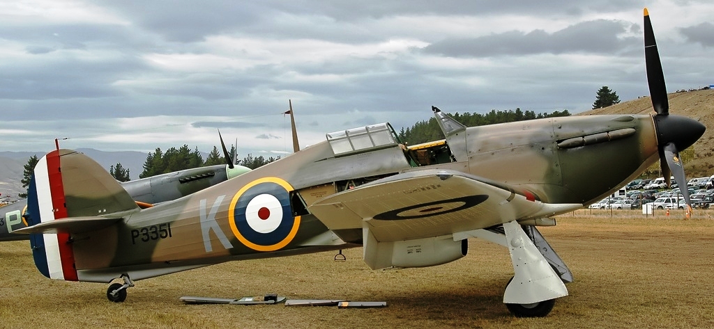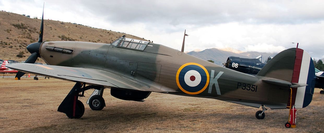 Hawker Hurricane Mk. IIa (Serial No. P3351). Built as a Hurricane Mk. I, this aircraft served with RAF No. 73 Sqn during the Battle of France. Relegated to a training role, she suffered an accident in September 1941 and was rebuilt as a Mk. IIa. She was re-serialed as (Serial No. DR393). She was then sent to Russia and served with the Soviet Air Force until she was shot down in the winter of 1943. The fighter was recovered in 1991, and restored by Hawker Restorations for Tim Wallis in New Zealand. Although restored as a Mk. IIa, she has been painted to represent P3351 when it flew during the Battle of France. She is now with a private owner in France, with the civil registration F-AZXR. Airworthy, Cannes-Mandelieu.